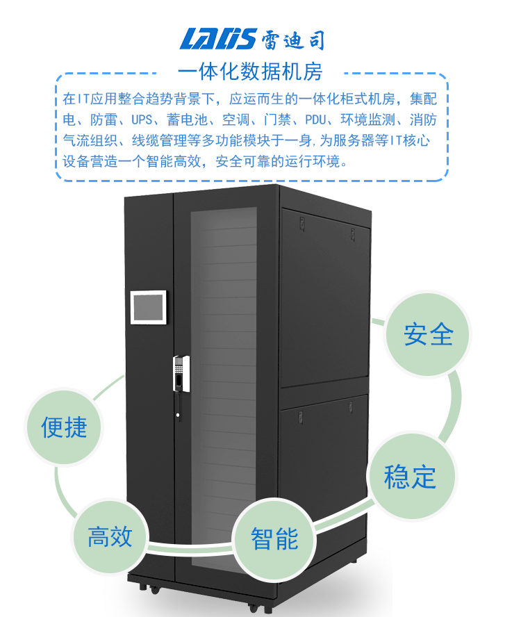 商品名称:雷迪司(LADIS) 雷迪司数据机房一体化机柜 服务器 精密空调 带门禁 UPS电源配电